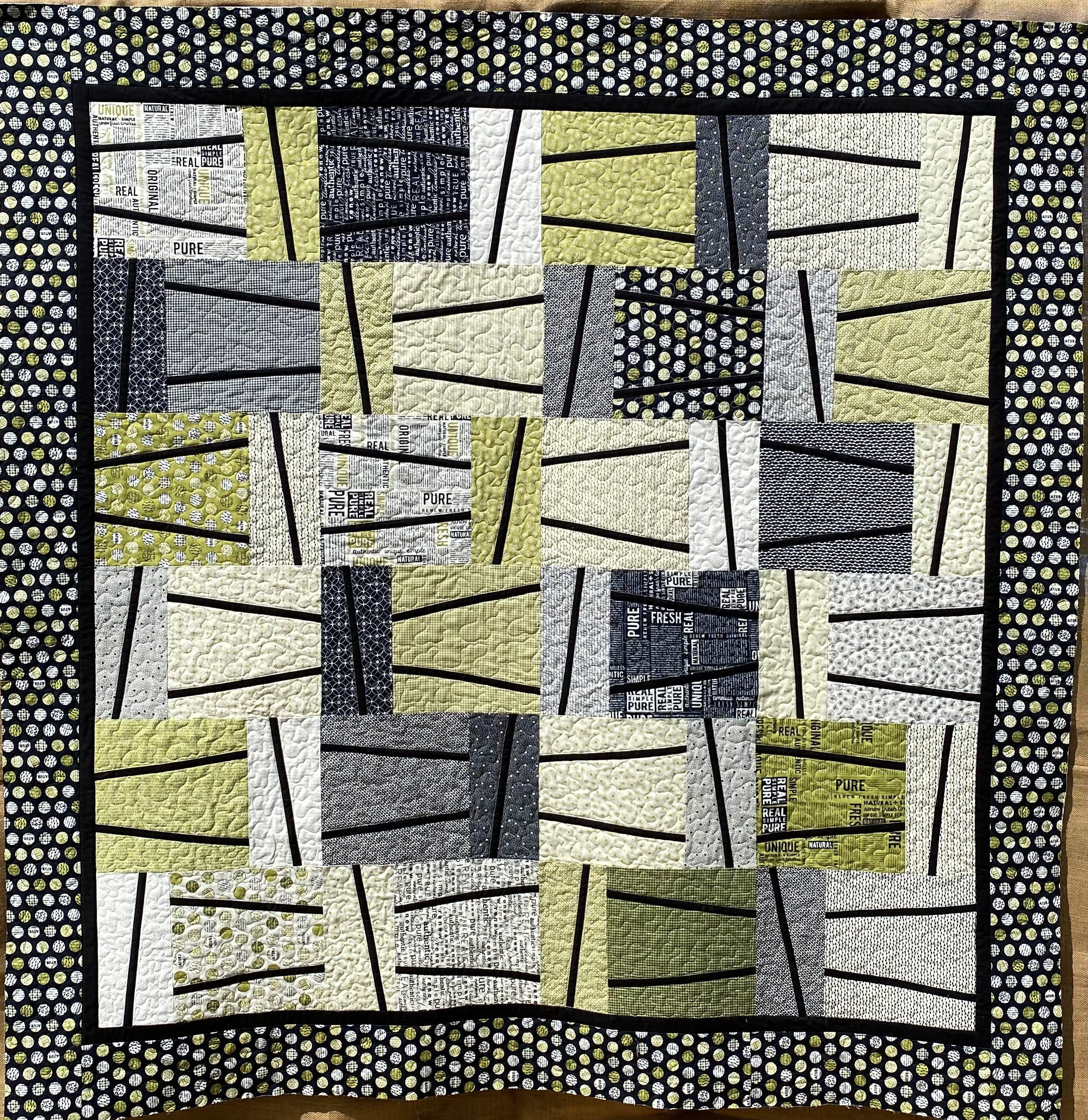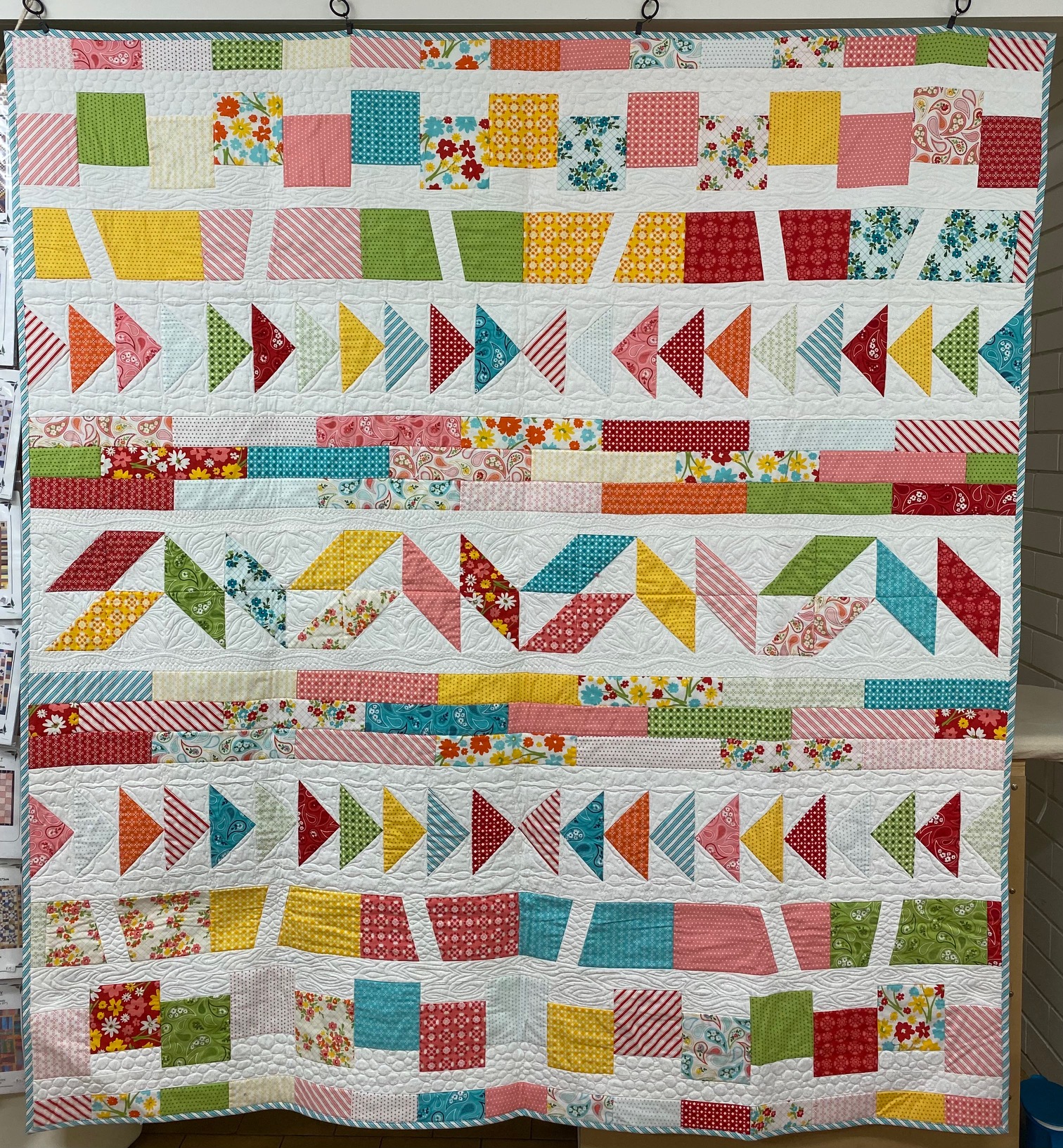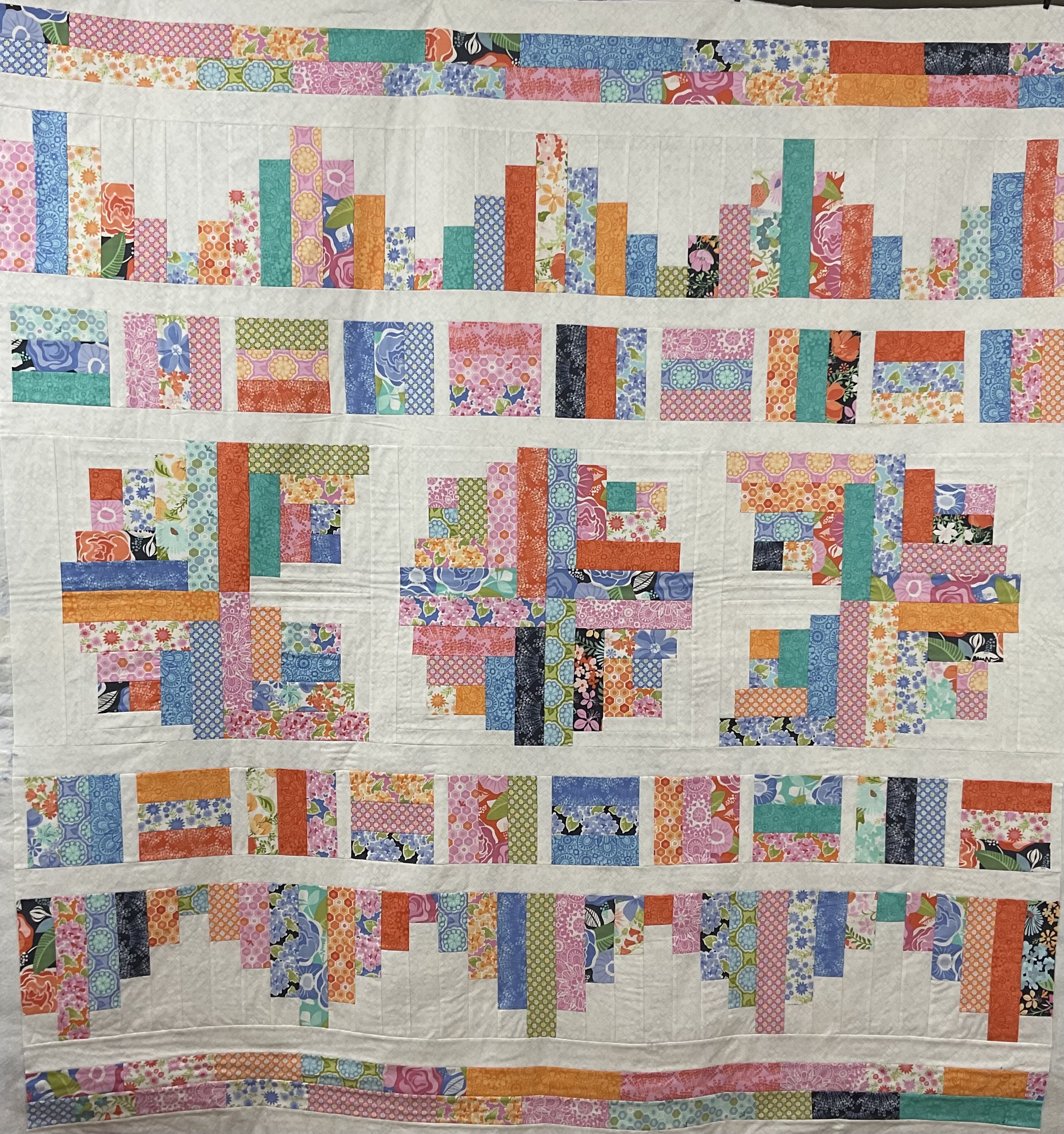 This quilt uses one jelly roll and one contrast fabric. Finished size – 70 ½” x 76 ½” (176cm x 194cm)